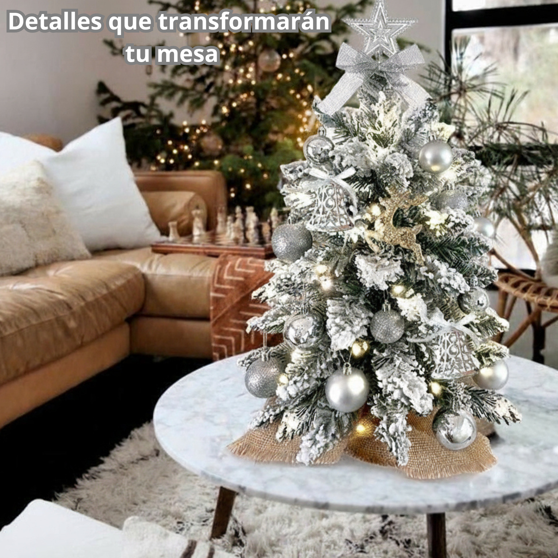 Decorate your home, office, shop, or apartment with this charming tabletop Christmas tree featuring a snowy forest design . Its realistic appearance, durable materials, and warm lights make it the perfect piece to create a magical Christmas atmosphere .