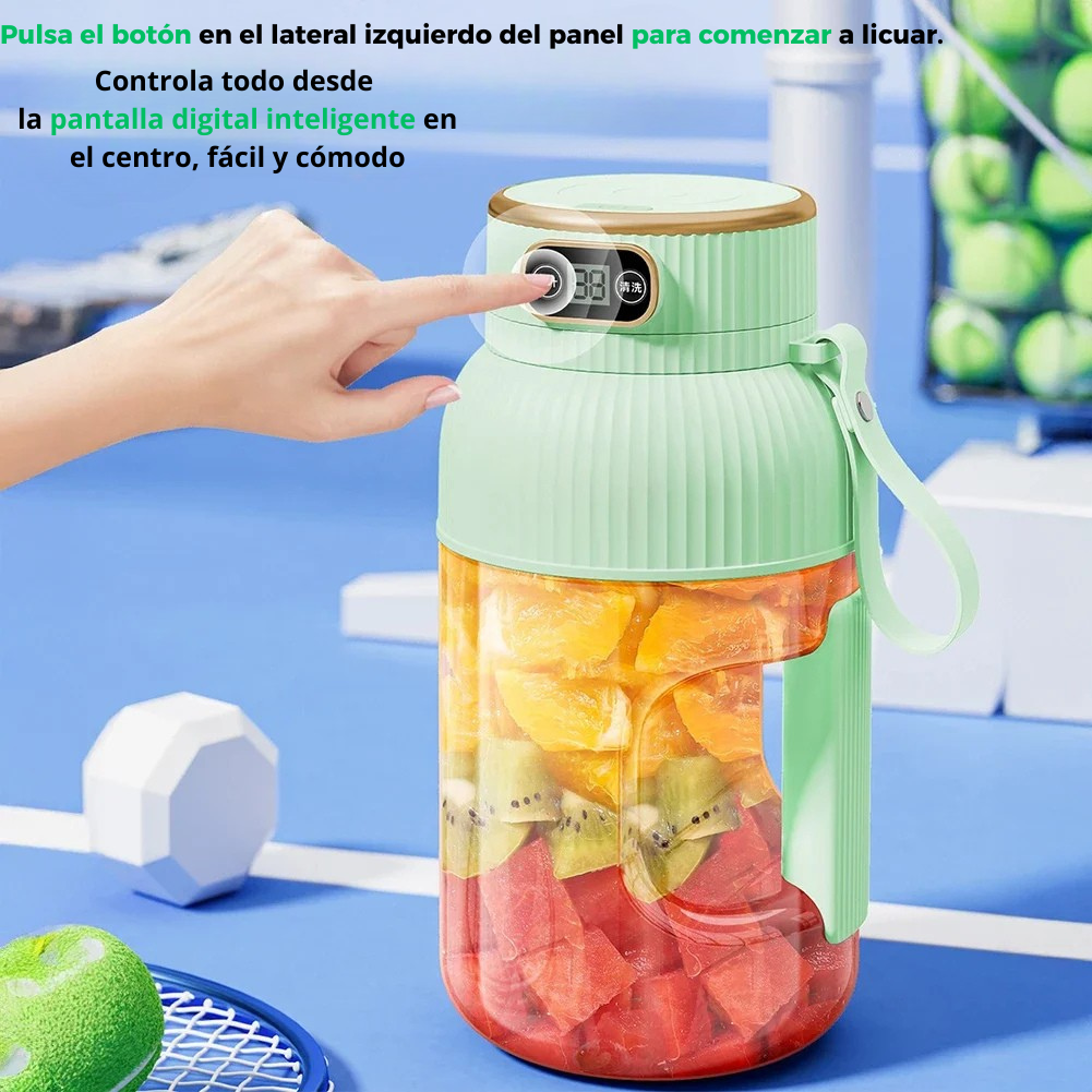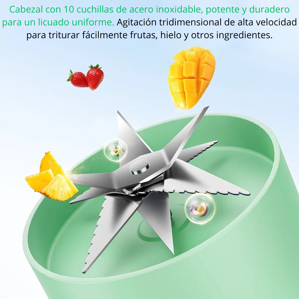 Lleva tus batidos y zumos frescos a donde quieras con esta licuadora portátil, compacta y eficiente para un estilo de vida saludable y en movimiento.